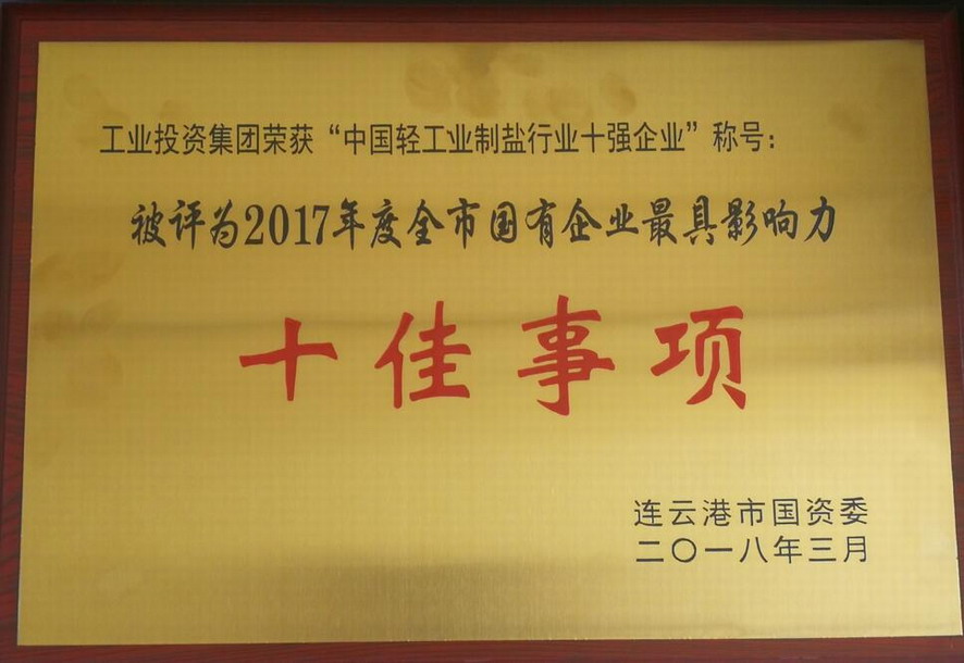 會上集團榮獲“2017年度市屬國有企業(yè)績效考評”一等獎;同時集團榮獲“中國輕工業(yè)制鹽行業(yè)十強企業(yè)”稱號成功入選2017年度全市國有企業(yè)最具影響力十佳事項之一。集團下屬杜鐘氨綸公司、資產(chǎn)管理公司被評為“2017年度全市國資系統(tǒng)先進集體”;胡傳祥被評為“全市國資系統(tǒng)2017年度優(yōu)秀管理者”;伏彩兵、王建、安樹林、王以知、羅孝平、趙華兵、喬以成、馮如點獲“全市國資系統(tǒng)2017年度先進工作者”稱號。
