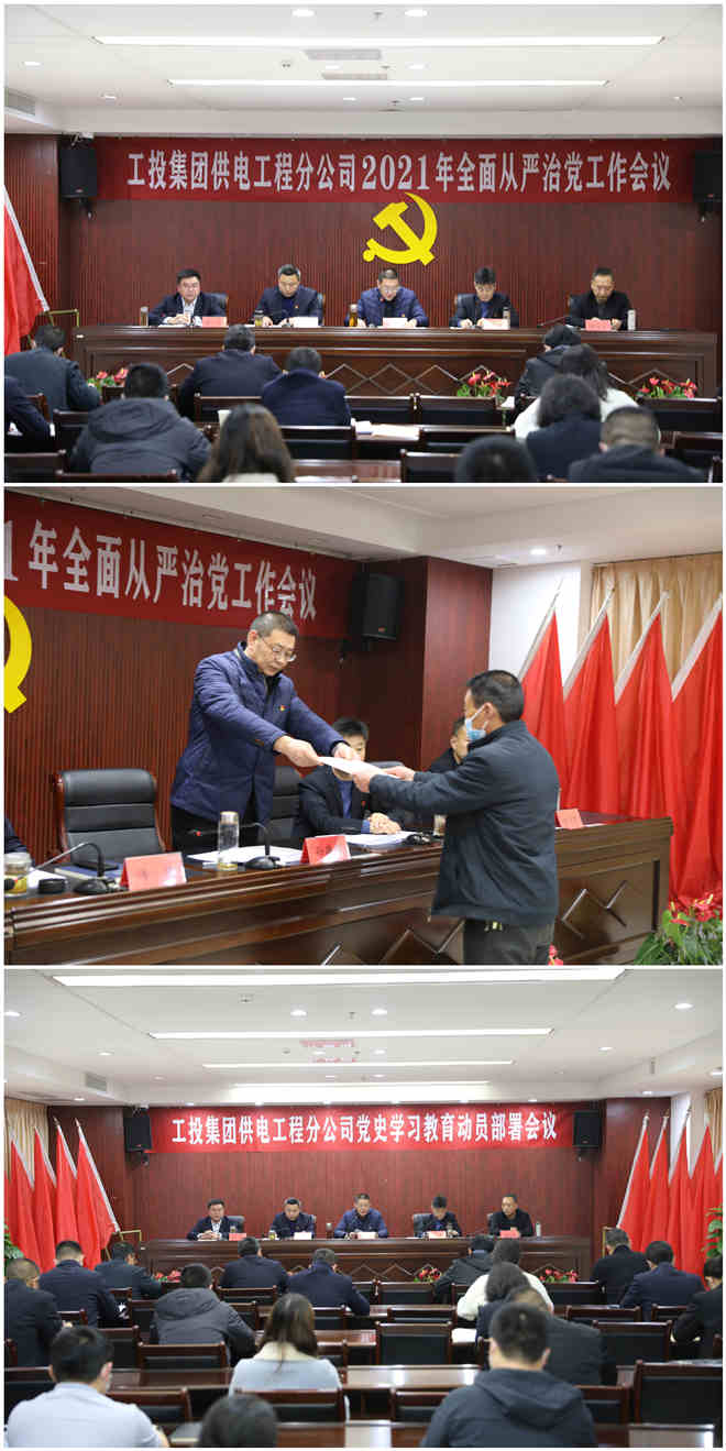 上半場,在公司2021年全面從嚴(yán)治黨工作會議上,全體參會人員首先觀看了全面從嚴(yán)治黨工作警示教育片。隨后,黨委書記、經(jīng)理孫政權(quán)在題為《強化政治建設(shè) 聚焦深度融合 以大黨建引領(lǐng)公司高質(zhì)量發(fā)展新征程》的黨委工作報告中指出,過去的一年,面對新冠疫情和經(jīng)濟(jì)下行的雙重壓力,公司黨委深入學(xué)習(xí)貫徹習(xí)近平新時代中國特色社會主義思想,以“不忘初心、牢記使命”主題教育為主線,扎實開展“雙融雙創(chuàng)”黨內(nèi)主題教育實踐活動,壓實管黨治黨責(zé)任、勇于直面困難挑戰(zhàn),推動公司經(jīng)濟(jì)在逆境中取得突破,黨建工作取得了顯著成效。報告強調(diào),2021年黨委工作的指導(dǎo)思想是:深入學(xué)習(xí)貫徹習(xí)近平新時代中國特色社會主義思想、十九屆五中全會精神等內(nèi)容,以“全面從嚴(yán)治黨”為統(tǒng)領(lǐng),以“黨史學(xué)習(xí)教育”為主線,以打造“工電先鋒”黨建品牌為抓手,扎實開展“奮進(jìn)新時代、領(lǐng)航開新篇”黨內(nèi)主題教育活動,以“大黨建”整合力量、凝聚人心,發(fā)揮黨的關(guān)鍵引領(lǐng)作用,將黨的政治優(yōu)勢轉(zhuǎn)化為發(fā)展優(yōu)勢。團(tuán)結(jié)帶領(lǐng)廣大干部員工,統(tǒng)一思想、凝聚力量,勇于擔(dān)當(dāng)、開拓進(jìn)取,加大改革創(chuàng)新、轉(zhuǎn)型升級、管理提升推動力度,開創(chuàng)工投供電高質(zhì)量發(fā)展新局面,以改革發(fā)展優(yōu)異成績向建黨100周年獻(xiàn)禮,為扛起“爭當(dāng)表率、爭做示范、走在前列”重大使命、奪取“十四五”發(fā)展開局首勝作出貢獻(xiàn)。圍繞上述總體要求,重點做好五個方面工作:持續(xù)深化政治建設(shè),推進(jìn)黨建經(jīng)濟(jì)深度融合;持續(xù)強化基層基礎(chǔ),構(gòu)建企業(yè)大黨建格局;持續(xù)推進(jìn)人才隊伍建設(shè),增強高質(zhì)量發(fā)展推動力;持續(xù)推進(jìn)黨風(fēng)廉政建設(shè),推進(jìn)全面從嚴(yán)治黨向縱深發(fā)展;持續(xù)推進(jìn)和諧企業(yè)創(chuàng)建,維護(hù)和諧穩(wěn)定發(fā)展的良好局面。