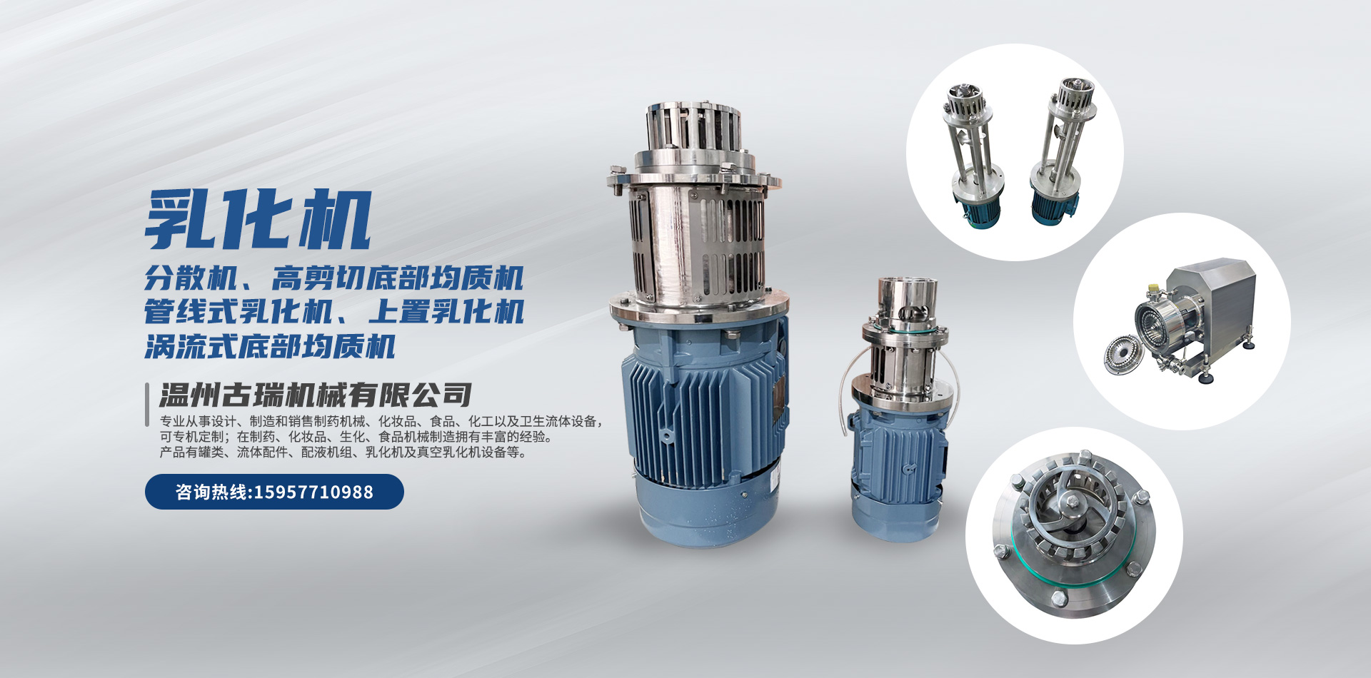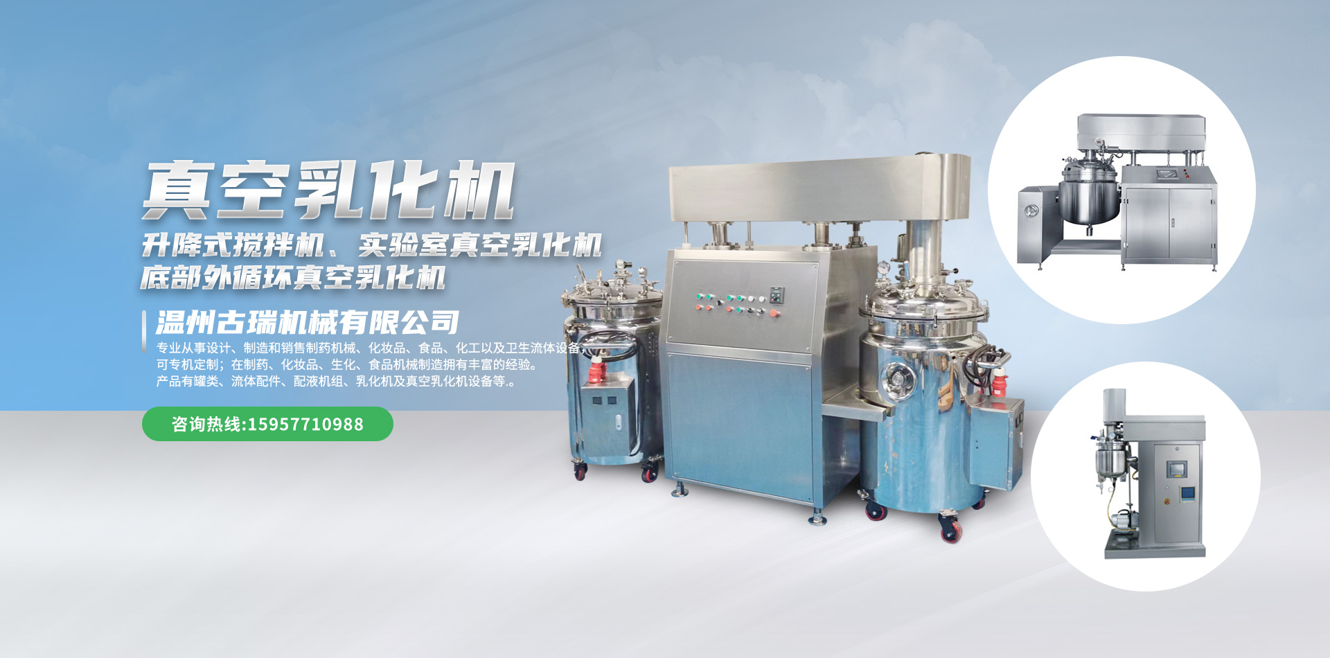 溫州古瑞機(jī)械有限公司專(zhuān)業(yè)從事設(shè)計(jì)、制造和銷(xiāo)售制藥機(jī)械、化妝品、食品、化工以及衛(wèi)生流體設(shè)備,可專(zhuān)機(jī)定制;在制藥、化妝品、生化、食品機(jī)械制造擁有豐富的經(jīng)驗(yàn)。產(chǎn)品有罐類(lèi)、流體配件、配液機(jī)組、乳化機(jī)及真空乳化機(jī)設(shè)備等,咨詢(xún)電話(huà):15957710988